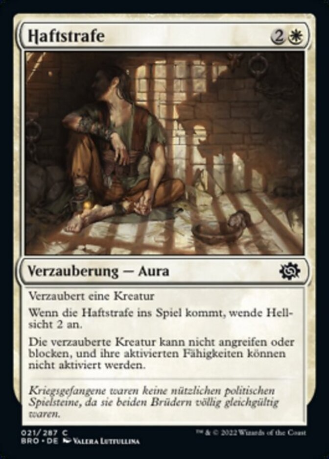 | Rules | Enchant creature When Prison Sentence enters the battlefield, scry 2. Enchanted creature can't attack or block, and its activated abilities can't be activated. |