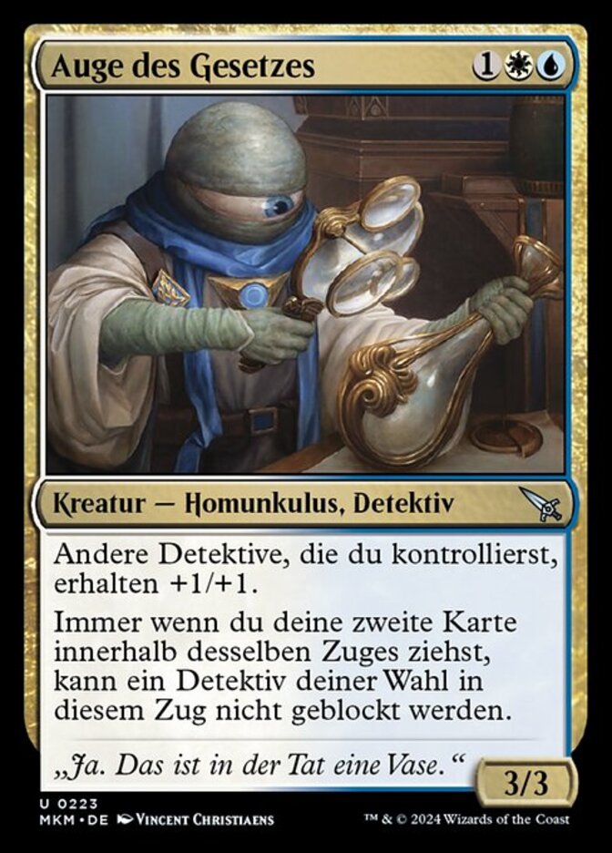 | Rules | Other Detectives you control get +1/+1. Whenever you draw your second card each turn, target Detective can't be blocked this turn. |