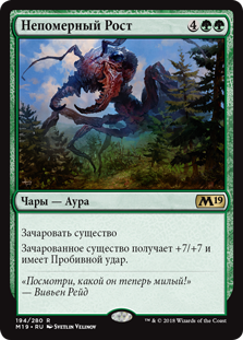 | Rules | Enchant creature Enchanted creature gets +7/+7 and has trample. |
