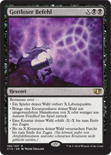 | Rules | Choose two — • Target player loses X life. • Return target creature card with mana value X or less from your graveyard to the battlefield. • Target creature gets -X/-X until end of turn. • Up to X target creatures gain fear until end of turn. (They can't be blocked except by artifact creatures and/or black creatures.) |