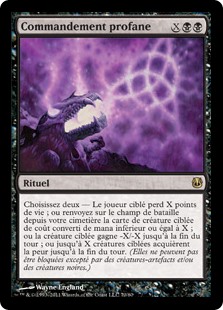 | Rules | Choose two — • Target player loses X life. • Return target creature card with mana value X or less from your graveyard to the battlefield. • Target creature gets -X/-X until end of turn. • Up to X target creatures gain fear until end of turn. (They can't be blocked except by artifact creatures and/or black creatures.) |