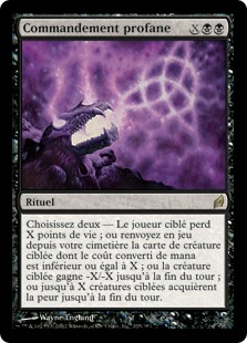 | Rules | Choose two — • Target player loses X life. • Return target creature card with mana value X or less from your graveyard to the battlefield. • Target creature gets -X/-X until end of turn. • Up to X target creatures gain fear until end of turn. (They can't be blocked except by artifact creatures and/or black creatures.) |
