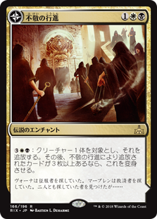 | Rules | : Exile target creature. Then if there are three or more cards exiled with Profane Procession, transform it. // (Transforms from Profane Procession.) : Add one mana of any color. , : Put a creature card exiled with this permanent onto the battlefield under your control. |
