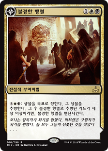 | Rules | : Exile target creature. Then if there are three or more cards exiled with Profane Procession, transform it. // (Transforms from Profane Procession.) : Add one mana of any color. , : Put a creature card exiled with this permanent onto the battlefield under your control. |