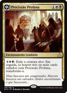 | Rules | : Exile target creature. Then if there are three or more cards exiled with Profane Procession, transform it. // (Transforms from Profane Procession.) : Add one mana of any color. , : Put a creature card exiled with this permanent onto the battlefield under your control. |
