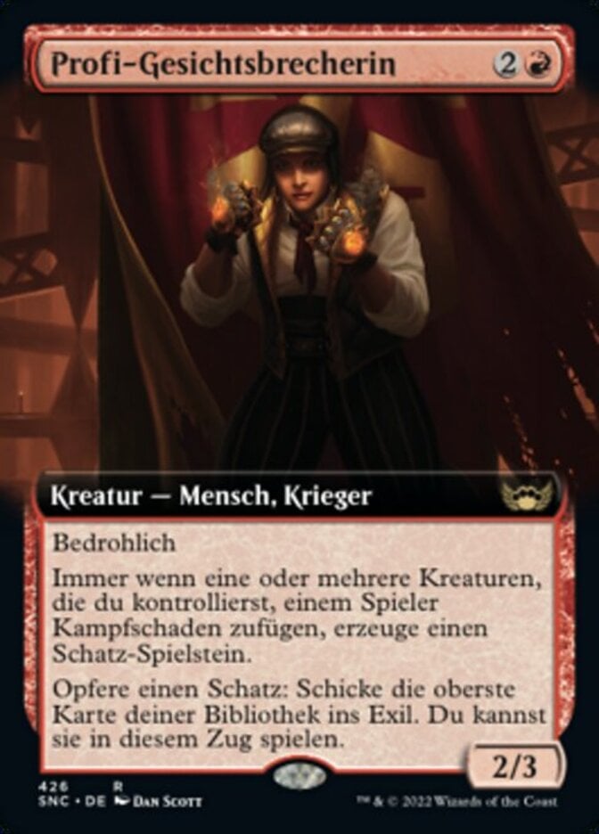 | Rules | Menace Whenever one or more creatures you control deal combat damage to a player, create a Treasure token. Sacrifice a Treasure: Exile the top card of your library. You may play that card this turn. |