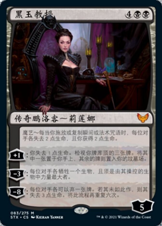 | Rules | Magecraft — Whenever you cast or copy an instant or sorcery spell, each opponent loses 2 life and you gain 2 life. +1: You lose 1 life. Look at the top three cards of your library. Put one of them into your hand and the rest into your graveyard. −3: Each opponent sacrifices a creature with the greatest power among creatures that player controls. −8: Each opponent may discard a card. If they don't, they lose 3 life. Repeat this process six more times. |