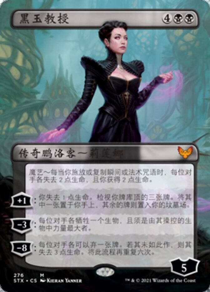 | Rules | Magecraft — Whenever you cast or copy an instant or sorcery spell, each opponent loses 2 life and you gain 2 life. +1: You lose 1 life. Look at the top three cards of your library. Put one of them into your hand and the rest into your graveyard. −3: Each opponent sacrifices a creature with the greatest power among creatures that player controls. −8: Each opponent may discard a card. If they don't, they lose 3 life. Repeat this process six more times. |