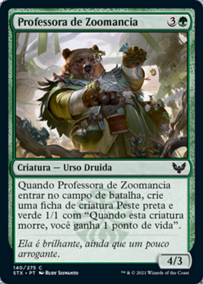 | Rules | When Professor of Zoomancy enters the battlefield, create a 1/1 black and green Pest creature token with "When this creature dies, you gain 1 life." |