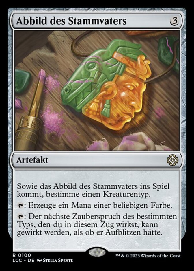 | Rules | As Progenitor's Icon enters the battlefield, choose a creature type. : Add one mana of any color. : The next spell of the chosen type you cast this turn can be cast as though it had flash. |
