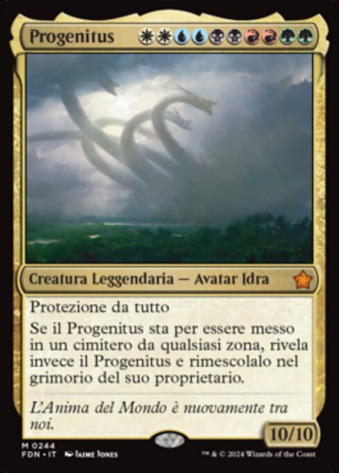 | Rules | Protection from everything If Progenitus would be put into a graveyard from anywhere, reveal Progenitus and shuffle it into its owner's library instead. |