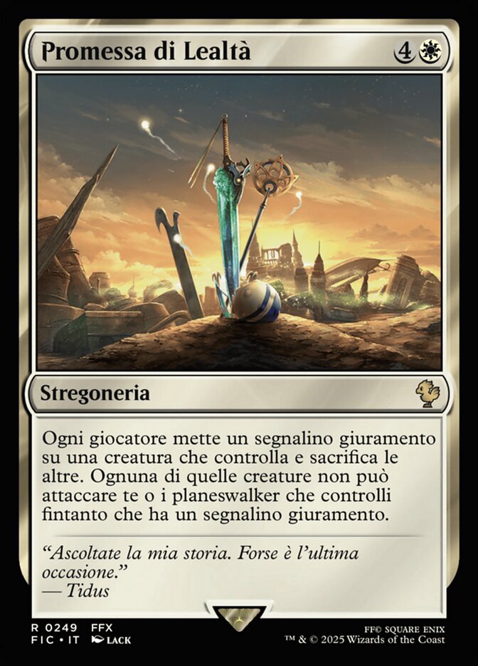 | Rules | Each player puts a vow counter on a creature they control and sacrifices the rest. Each of those creatures can't attack you or planeswalkers you control for as long as it has a vow counter on it. |