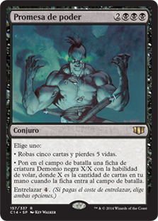 | Rules | Choose one — • You draw five cards and you lose 5 life. • Create an X/X black Demon creature token with flying, where X is the number of cards in your hand. Entwine (Choose both if you pay the entwine cost.) |