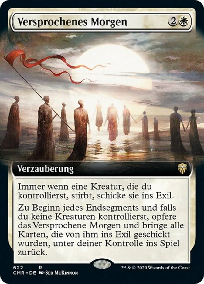 | Rules | Whenever a creature you control dies, exile it. At the beginning of each end step, if you control no creatures, sacrifice Promise of Tomorrow and return all cards exiled with it to the battlefield under your control. |