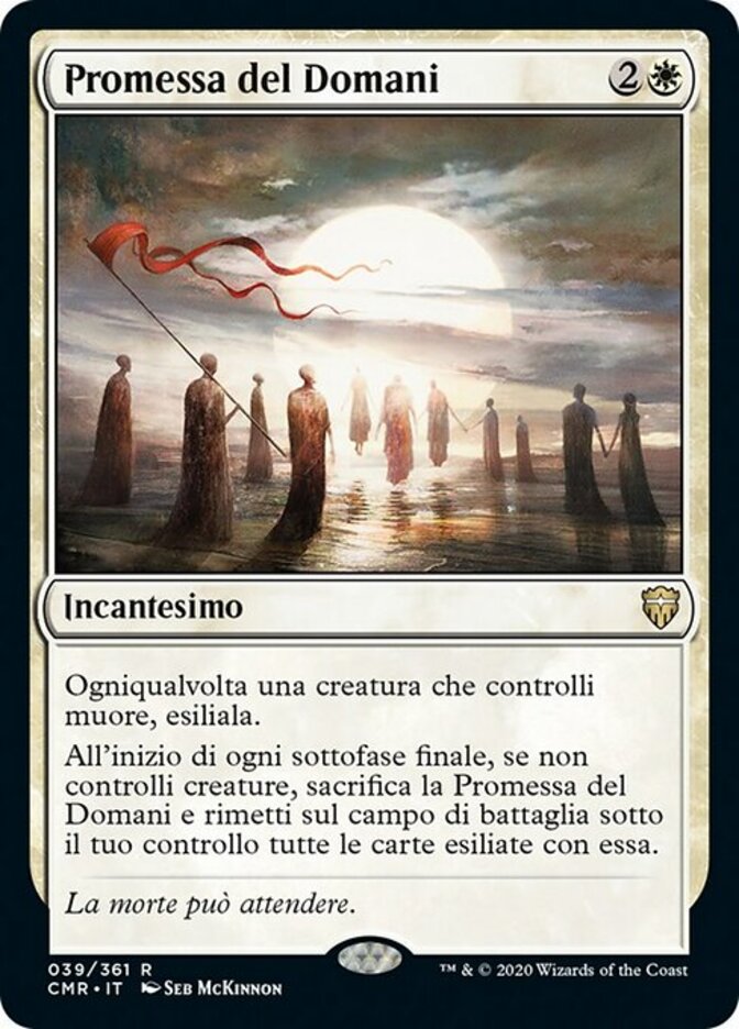 | Rules | Whenever a creature you control dies, exile it. At the beginning of each end step, if you control no creatures, sacrifice Promise of Tomorrow and return all cards exiled with it to the battlefield under your control. |