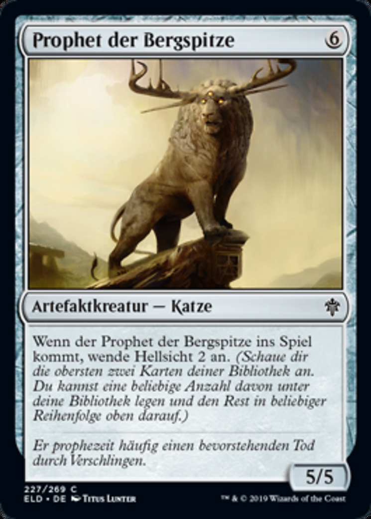 | Rules | When Prophet of the Peak enters the battlefield, scry 2. (Look at the top two cards of your library, then put any number of them on the bottom of your library and the rest on top in any order.) |