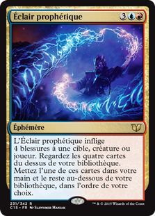 | Rules | Prophetic Bolt deals 4 damage to any target. Look at the top four cards of your library. Put one of those cards into your hand and the rest on the bottom of your library in any order. |