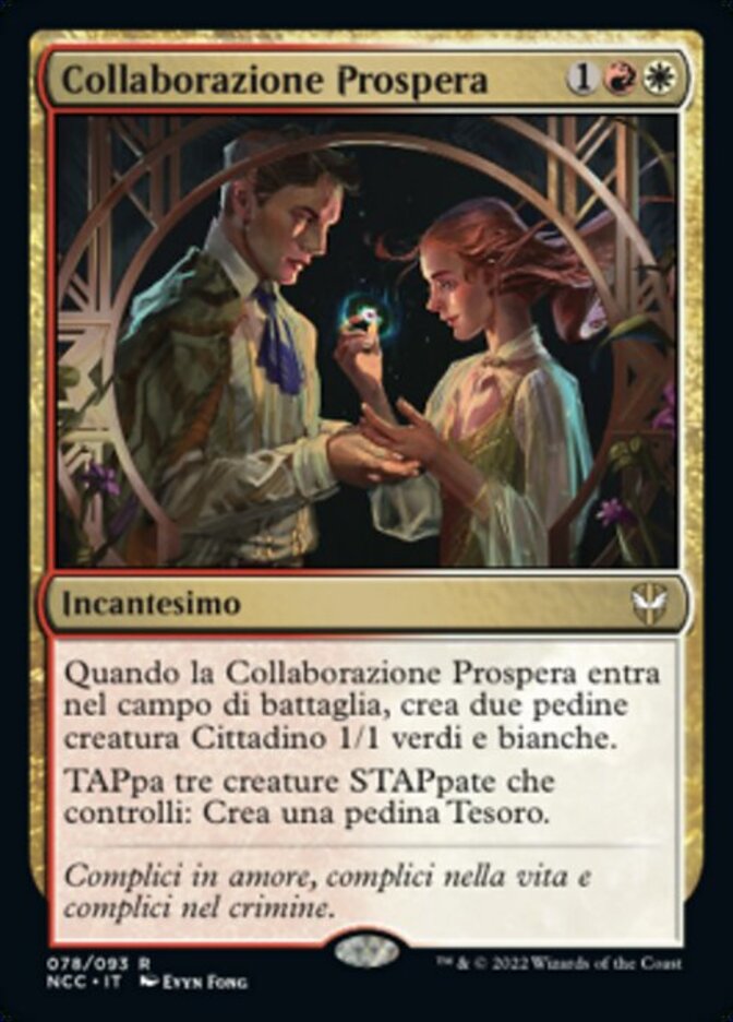| Rules | When Prosperous Partnership enters the battlefield, create two 1/1 green and white Citizen creature tokens. Tap three untapped creatures you control: Create a Treasure token. |