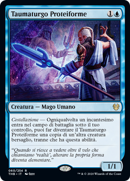 | Rules | Constellation — Whenever an enchantment enters the battlefield under your control, you may have Protean Thaumaturge become a copy of another target creature, except it has this ability. |