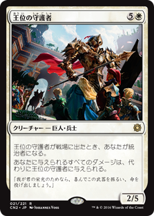 | Rules | When Protector of the Crown enters the battlefield, you become the monarch. All damage that would be dealt to you is dealt to Protector of the Crown instead. |