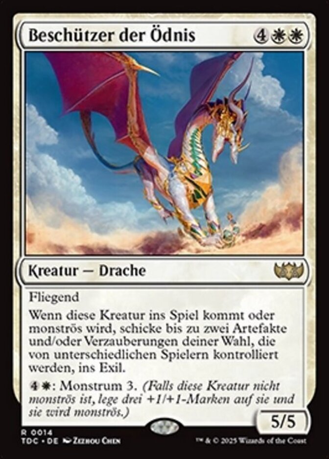 | Rules | Flying When this creature enters or becomes monstrous, exile up to two target artifacts and/or enchantments controlled by different players. : Monstrosity 3. (If this creature isn't monstrous, put three +1/+1 counters on it and it becomes monstrous.) |