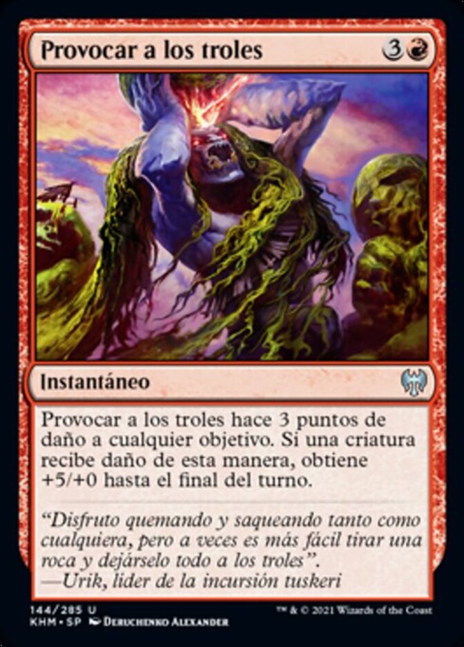 | Rules | Provoke the Trolls deals 3 damage to any target. If a creature is dealt damage this way, it gets +5/+0 until end of turn. |