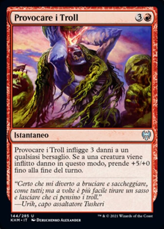| Rules | Provoke the Trolls deals 3 damage to any target. If a creature is dealt damage this way, it gets +5/+0 until end of turn. |