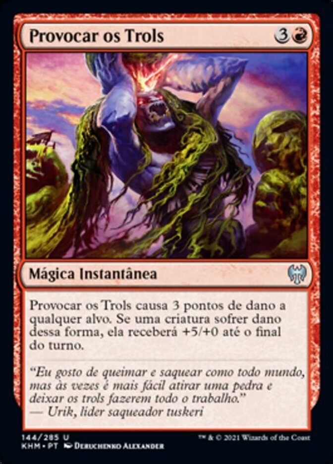 | Rules | Provoke the Trolls deals 3 damage to any target. If a creature is dealt damage this way, it gets +5/+0 until end of turn. |