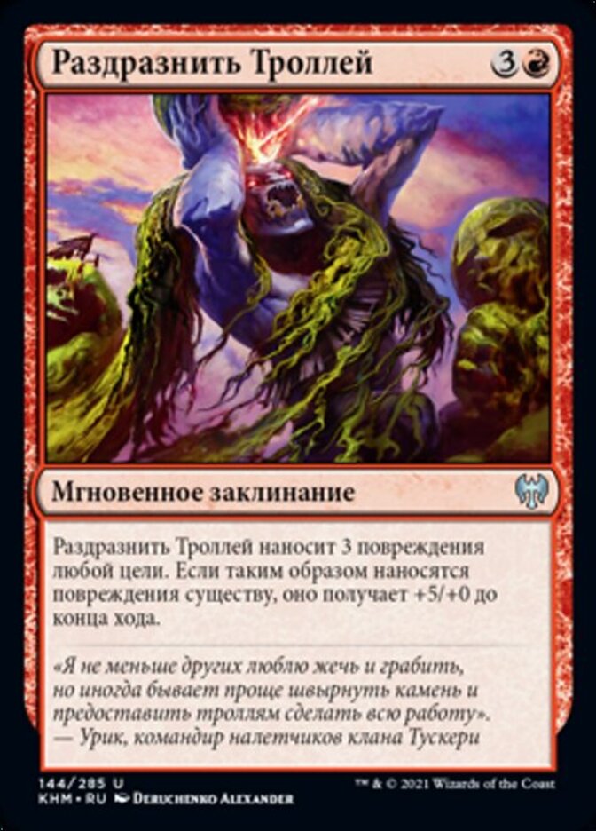 | Rules | Provoke the Trolls deals 3 damage to any target. If a creature is dealt damage this way, it gets +5/+0 until end of turn. |