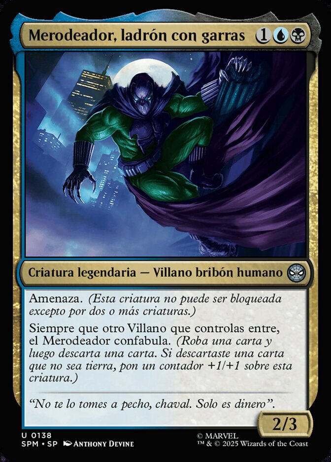 | Rules | Menace (This creature can't be blocked except by two or more creatures.) Whenever another Villain you control enters, Prowler connives. (Draw a card, then discard a card. If you discarded a nonland card, put a +1/+1 counter on this creature.) |