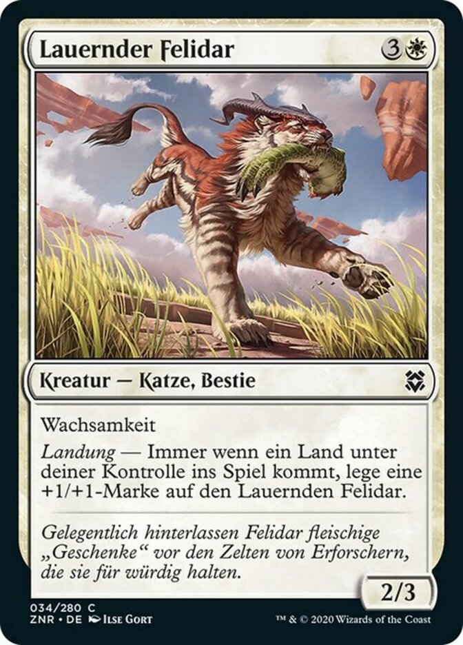 | Rules | Vigilance Landfall — Whenever a land enters the battlefield under your control, put a +1/+1 counter on Prowling Felidar. |