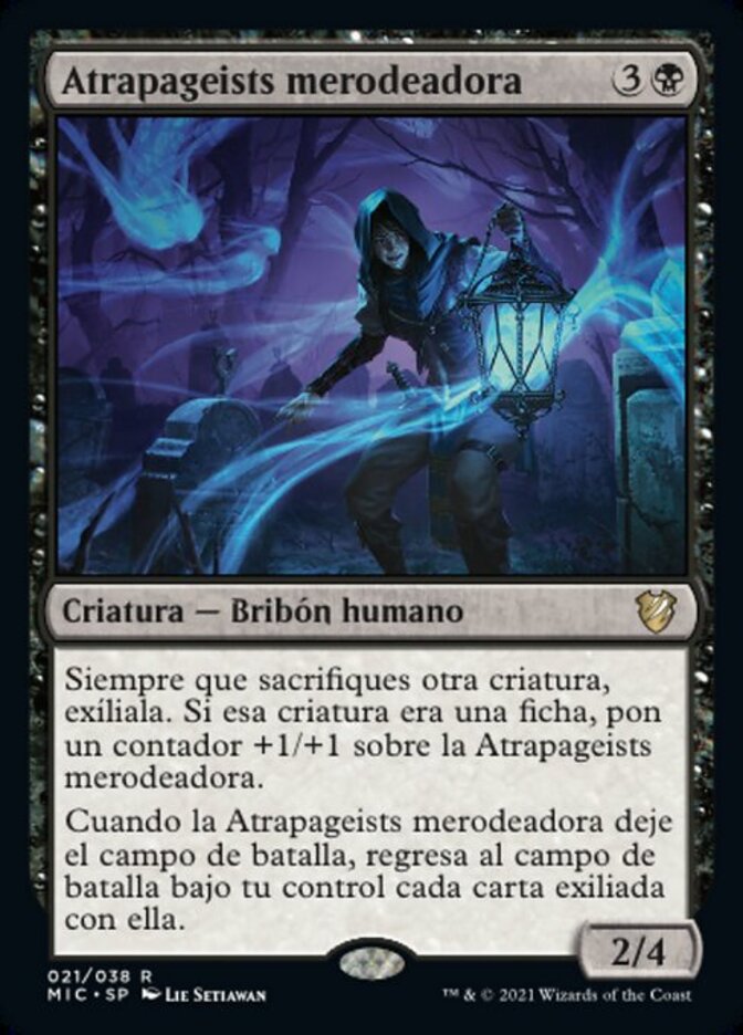 | Rules | Whenever you sacrifice another creature, exile it. If that creature was a token, put a +1/+1 counter on Prowling Geistcatcher. When Prowling Geistcatcher leaves the battlefield, return each card exiled with it to the battlefield under your control. |