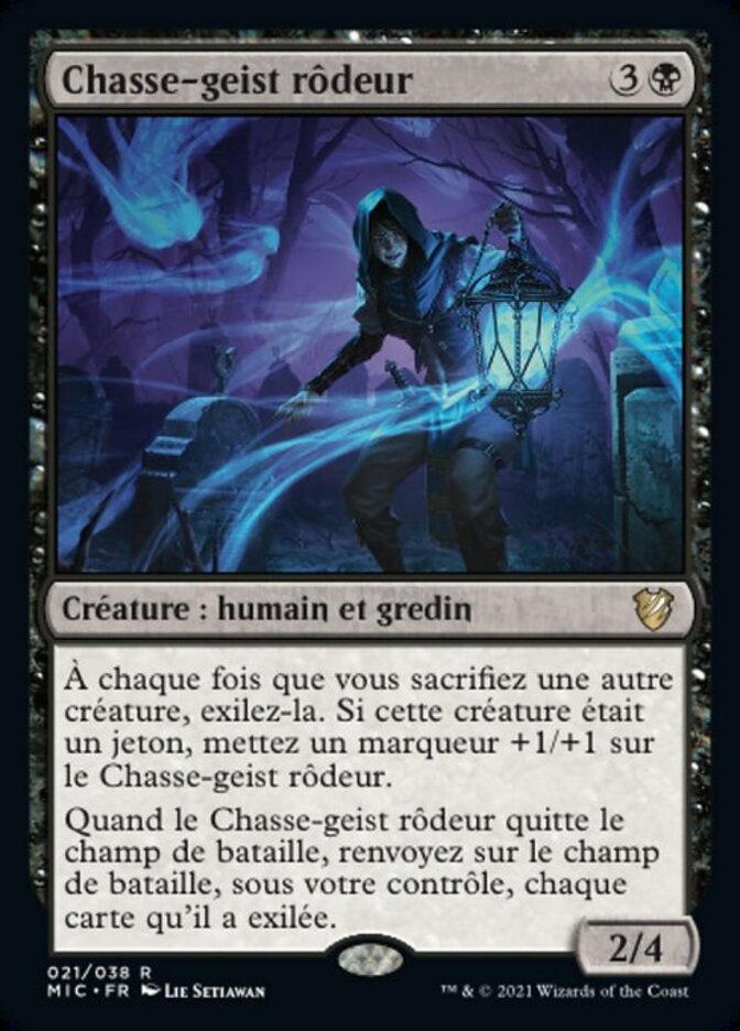 | Rules | Whenever you sacrifice another creature, exile it. If that creature was a token, put a +1/+1 counter on Prowling Geistcatcher. When Prowling Geistcatcher leaves the battlefield, return each card exiled with it to the battlefield under your control. |