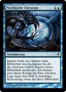 | Rules | Whenever an opponent shuffles their library, you may look at the top two cards of that library. You may exile one of those cards. Then put the rest on top of that library in any order. |