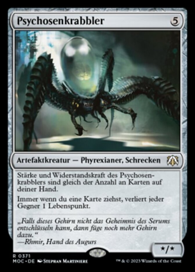 | Rules | Psychosis Crawler's power and toughness are each equal to the number of cards in your hand. Whenever you draw a card, each opponent loses 1 life. |