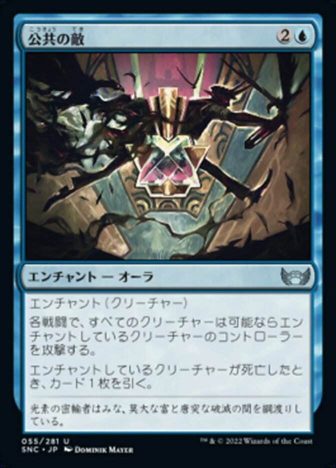 | Rules | Enchant creature All creatures attack enchanted creature's controller each combat if able. When enchanted creature dies, draw a card. |