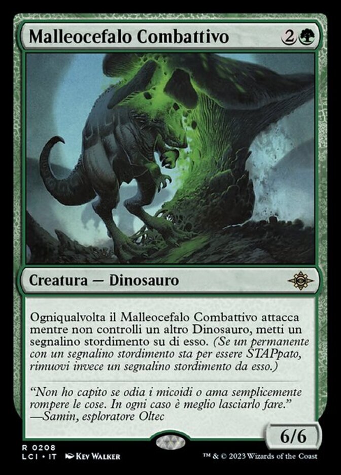 | Rules | Whenever Pugnacious Hammerskull attacks while you don't control another Dinosaur, put a stun counter on it. (If a permanent with a stun counter would become untapped, remove one from it instead.) |