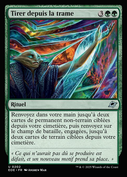 | Rules | Return up to two target nonland permanent cards from your graveyard to your hand, then return up to two target land cards from your graveyard to the battlefield tapped. |