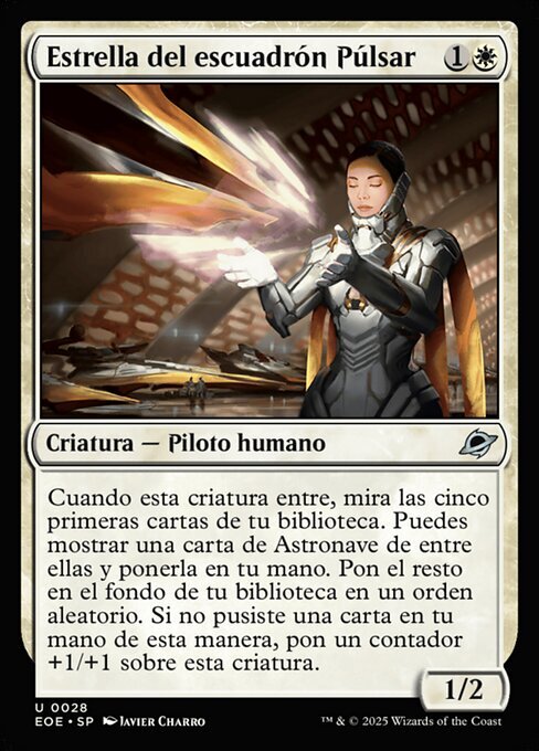 | Rules | When this creature enters, look at the top five cards of your library. You may reveal a Spacecraft card from among them and put it into your hand. Put the rest on the bottom of your library in a random order. If you didn't put a card into your hand this way, put a +1/+1 counter on this creature. |