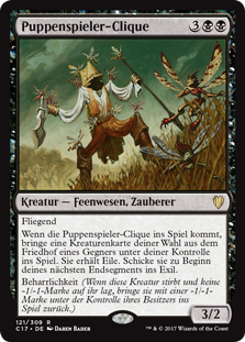 | Rules | Flying When Puppeteer Clique enters the battlefield, put target creature card from an opponent's graveyard onto the battlefield under your control. It gains haste. At the beginning of your next end step, exile it. Persist (When this creature dies, if it had no -1/-1 counters on it, return it to the battlefield under its owner's control with a -1/-1 counter on it.) |