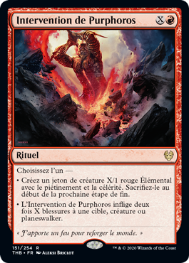 • Purphoros's Intervention deals twice X damage to target creature or planeswalker.