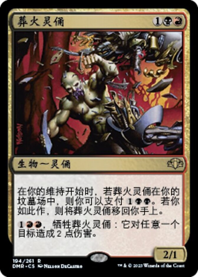 | Rules | At the beginning of your upkeep, if Pyre Zombie is in your graveyard, you may pay . If you do, return Pyre Zombie to your hand. , Sacrifice Pyre Zombie: It deals 2 damage to any target. |
