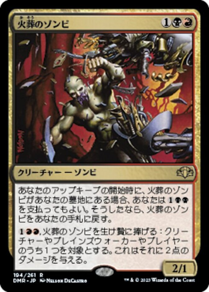 | Rules | At the beginning of your upkeep, if Pyre Zombie is in your graveyard, you may pay . If you do, return Pyre Zombie to your hand. , Sacrifice Pyre Zombie: It deals 2 damage to any target. |