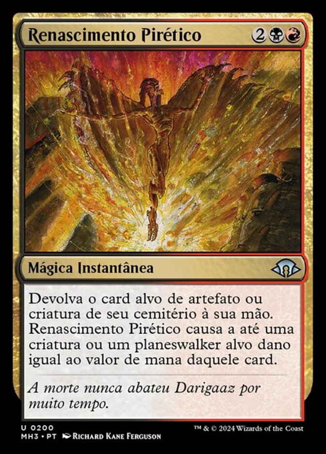 | Rules | Return target artifact or creature card from your graveyard to your hand. Pyretic Rebirth deals damage equal to that card's mana value to up to one target creature or planeswalker. |