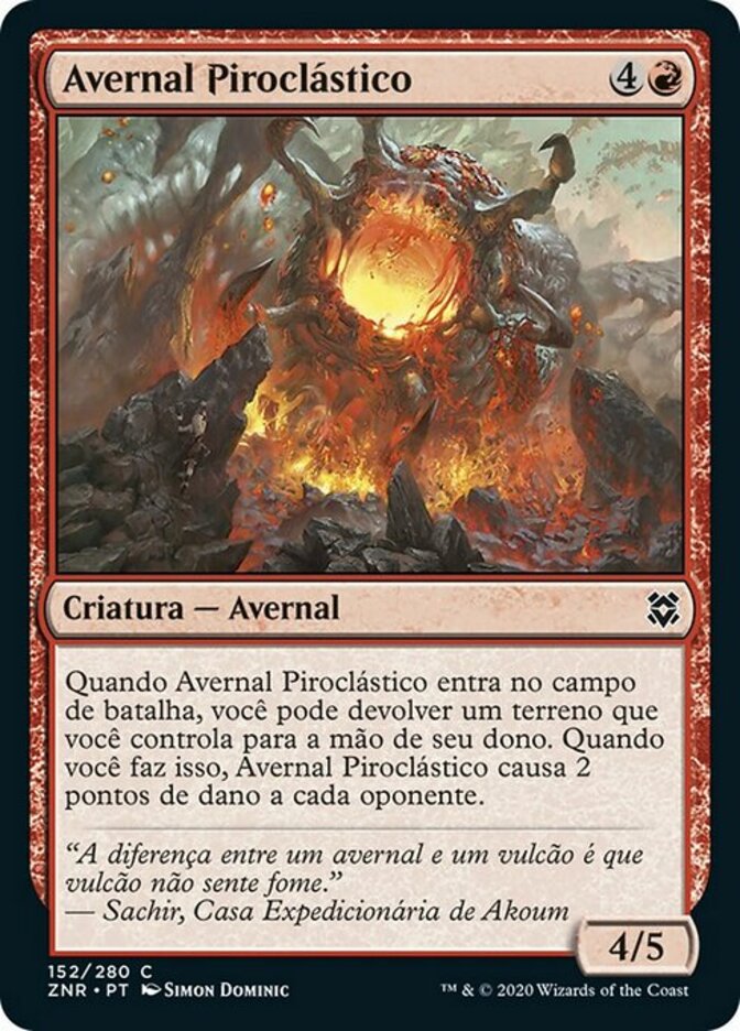 | Rules | When Pyroclastic Hellion enters the battlefield, you may return a land you control to its owner's hand. When you do, Pyroclastic Hellion deals 2 damage to each opponent. |
