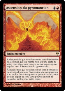 | Rules | Whenever you cast an instant or sorcery spell that has the same name as a card in your graveyard, you may put a quest counter on Pyromancer Ascension. Whenever you cast an instant or sorcery spell while Pyromancer Ascension has two or more quest counters on it, you may copy that spell. You may choose new targets for the copy. |