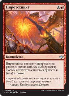 | Rules | Pyrotechnics deals 4 damage divided as you choose among any number of targets. |