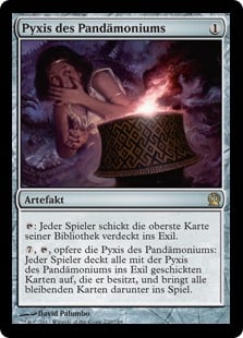 | Rules | : Each player exiles the top card of their library face down. , , Sacrifice Pyxis of Pandemonium: Each player turns face up all cards they own exiled with Pyxis of Pandemonium, then puts all permanent cards among them onto the battlefield. |
