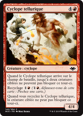 | Rules | When Quakefoot Cyclops enters the battlefield, up to two target creatures can't block this turn. Cycling (, Discard this card: Draw a card.) When you cycle Quakefoot Cyclops, target creature can't block this turn. |