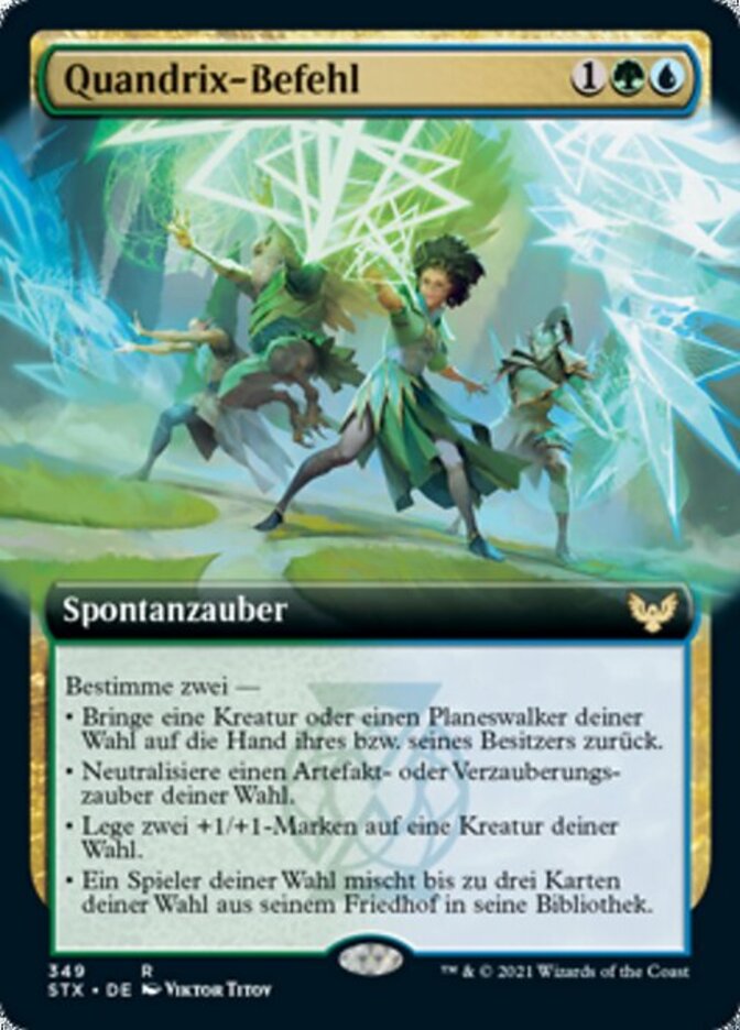 | Rules | Choose two — • Return target creature or planeswalker to its owner's hand. • Counter target artifact or enchantment spell. • Put two +1/+1 counters on target creature. • Target player shuffles up to three target cards from their graveyard into their library. |